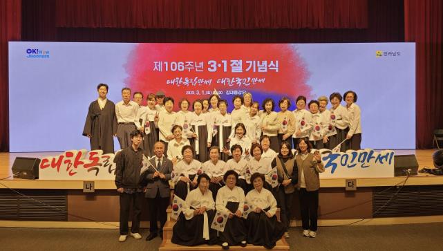 함평군은 4일 “함평군 노인복지관 나비사랑 합창단이 지난 1일 전남도청 김대중 강당에서 개최된 제106주년 3‧1절 기념식에 참석해 애국가 및 삼일절 노래를 제창해 기념식에 감동을 더했다”고 밝혔다.
