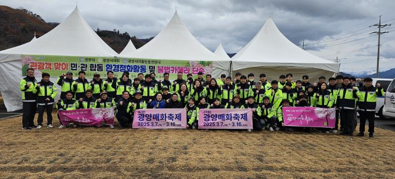 이날 참석한 이들은 광양매화축제 주 행사장과 청매실농원 일대의 쓰레기를 수거했으며, 공중화장실의 안전한 사용을 위해 불법카메라 단속 활동을 실시했다.