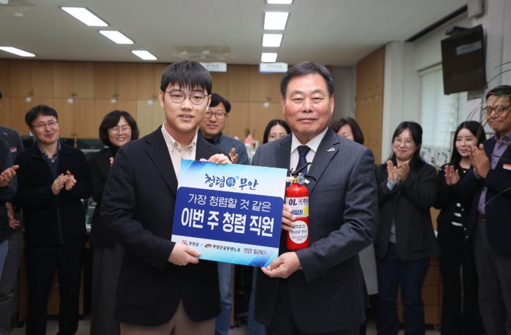 김산 군수는 올해 1월 고등학교를 졸업하고 신규 임용된 식량원예과 전해찬 직원을 지명했으며, 무안군 공무원노조는 상하수도사업소 박상원 소장을 지명했다.