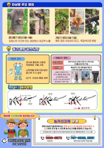 한편, 화상병 방제는 개화 전 1회, 개화기 2회 총 3회에 걸쳐 의무 방제를 실시한다.