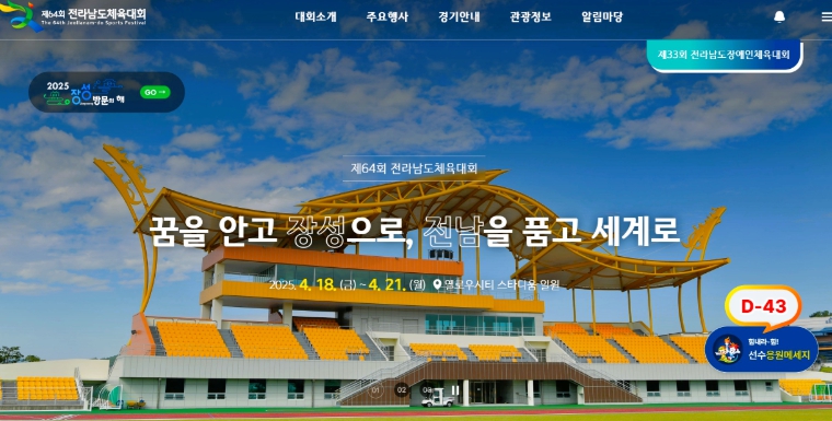 화면 우측에는 체전 개최일까지 남은 날들을 표시한 디데이(D-day)와 선수들에게 응원 메시지를 전할 수 있는 ‘응원게시판’ 바로가기도 마련돼 있다.