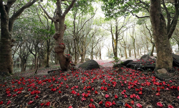 7m쯤 되는 동백나무들이 일제히 동백꽃을 피워 장관을 만들어내는 지역의 명소로 잘 알려져 있다.