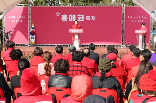 박우량 신안군수는 “불모지였던 이곳이 오랜 시간에 걸쳐 지금처럼 아름다운 풍경을 이루고 홍매화축제를 개최하기까지 많은 분들의 노고와 정성이 있었다.”라며, “이를 깊이 치하하며, 앞으로도 홍매화축제가 신안군을 대표하는 봄 축제로 자리 잡을 수 있도록 지속적인 관심과 성원을 부탁드린다.”라고 말했다.