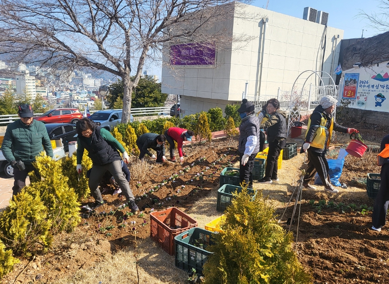 이날 활동에는 중앙동 직원, 통장협의회, 주민자치회, 르네상스실천본부, 진남로상가상인회 등 50여 명이 자율적으로 참여해 팬지, 비올라, 데이지, 금잔화, 리빙스턴데이지, 루피너스 등 봄꽃 6종 3,700본을 심었다.