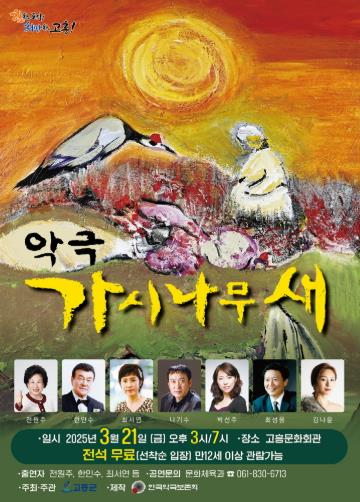 이번 공연은 고흥군민의 문화 향유권 신장과 문화접근성을 높이기 위해 기획됐으며, 만 12세 이상이면 누구나 무료로 관람할 수 있다.