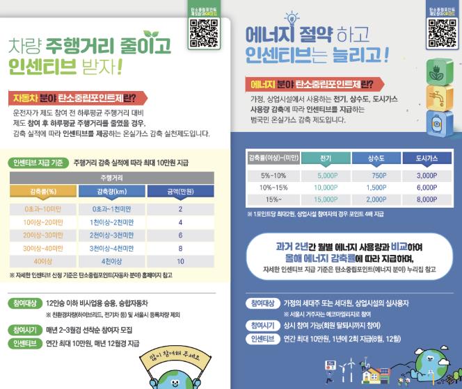 '탄소중립포인트제'는 세대별 에너지 절약과 자동차 주행거리 감축 두 가지 분야로 운영되며, 실천 여부에 따라 최대 10만 원 상당의 인센티브를 지급한다.