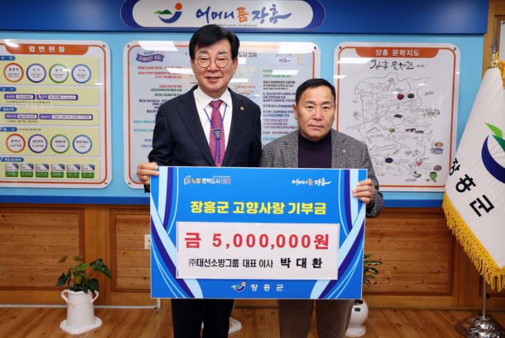 3월 7일 장흥군청에서 열린 기부금 전달식에서 박대환 대표는 “고향인 장흥이 더욱 발전하고, 지역 주민들에게 실질적인 도움이 되기를 바라는 마음으로 기부를 결정했다”며 “앞으로도 지역사회를 위한 다양한 나눔 활동을 이어가겠다”고 전했다.