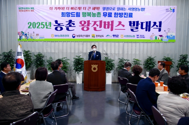 영암군은 총사업비 1억4천4백만원을 들여, 3월 12일부터 미암을 시작으로 서영암농협, 군서농협, 영암농협, 낭주농협 등 총 4곳에서 영암, 덕진, 도포, 군서, 학산, 미암 등 지난해 보다 1,200명이 증가한지역 주민 약 2,000여 명을 대상으로 한방 진료, 침술, 검안, 수액 등 전문적인 의료검진과 다양한 복지서비스를 제공할 예정이다.
