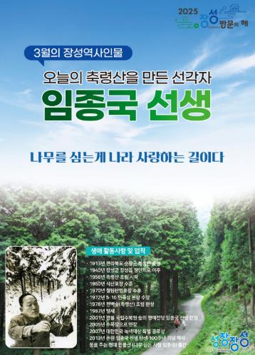 첫 번째 인물은 장성 축령산 편백숲을 가꾼 조림왕 춘원 임종국 선생이다.