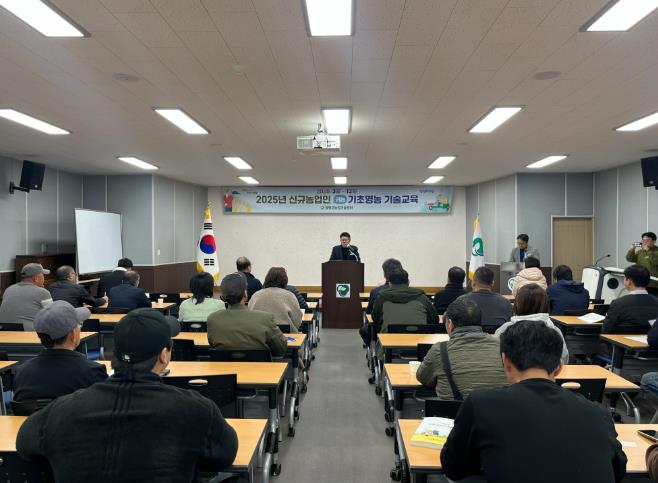 기초 영농 기술교육은 신규농업인의 성공적인 지역 정착과 안정적인 소득 기반 조성을 위해 마련됐으며 개강식에는 20대부터 60대까지 다양한 연령대를 가진 50여 명의 신규농업인 교육생이 참석해 열의를 불태웠다.