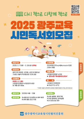 대상은 광주지역 학부모, 교직원, 시민 등이며, 팀당 5명 이상 구성된 자발적 독서 동아리로 참여해야 한다.