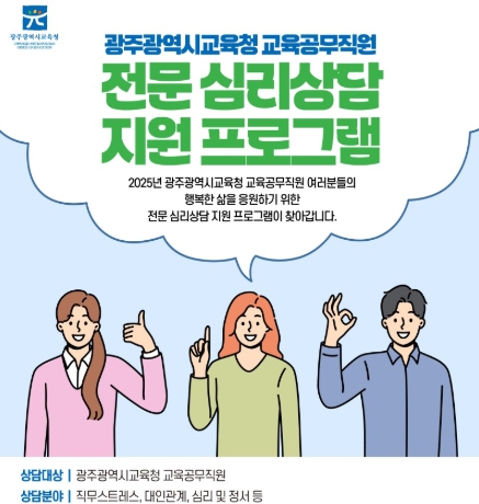교육공무직원 전문심리상담은 전문심리상담 기관에 위탁해 오는 17일부터 연말까지 운영된다.