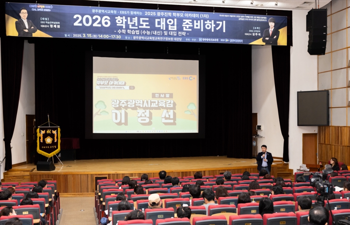 이번 ‘광주진학 학부모 아카데미’는 올해 고3이 된 학생의 학부모를 대상으로 ‘고3을 위한 2026 대입 준비하기–수학 학습법 및 대입 전략’을 주제로 진행됐다.