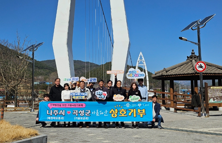 곡성군 기술보급과와 나주시 배원예유통과는 지난 2월 기관간 상호기부에 대한 협의를 거쳐 3월 13일부터 3월 14일까지 이틀 동안 소속 직원 20명(각 기관별 10명)이 참여해 “고향사랑e음” 홈페이지를 통해 기관별 각 100만원을 상호 기부하며 우호 관계를 돈독히 다졌다.