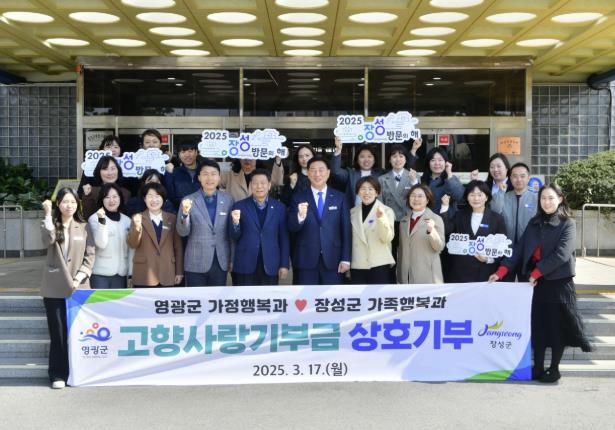 이번 상호 기부는 영광군 가정행복과와 장성군 가족행복과 직원 40여 명이 고향사랑기부제의 활성화와 상생 발전을 응원하며 기관 당 200만원을 상호 기부해 지역발전에 힘을 모았다.