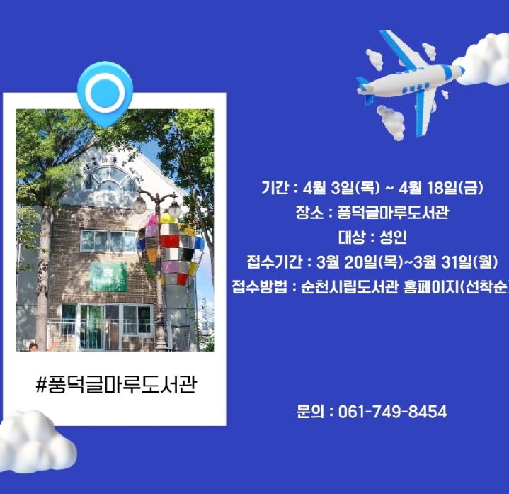 시 관계자는 “다채로운 여행 프로그램을 통해 풍덕글마루도서관이 여행 특화 도서관으로 자리 잡고, 시민들에게 정보 제공과 더불어 여행의 즐거움을 전할 수 있도록 노력하겠다”고 밝혔다.