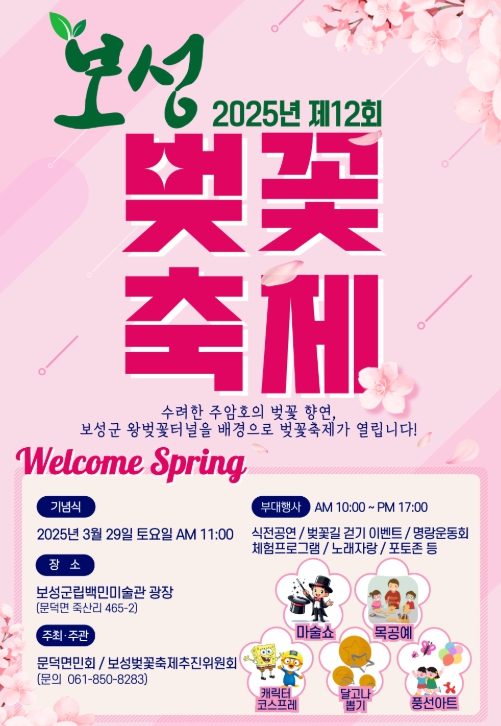 보성벚꽃축제추진위원회 조연옥 위원장은“지역민이 함께하는 축제를 통해 보성의 아름다움을 널리 알리고 싶다.”며“다시 피는 벚꽃처럼 사랑하는 사람들과 함께 보성왕벚꽃터널에서 2025년 봄을 시작하길 바란다.”고 말했다.