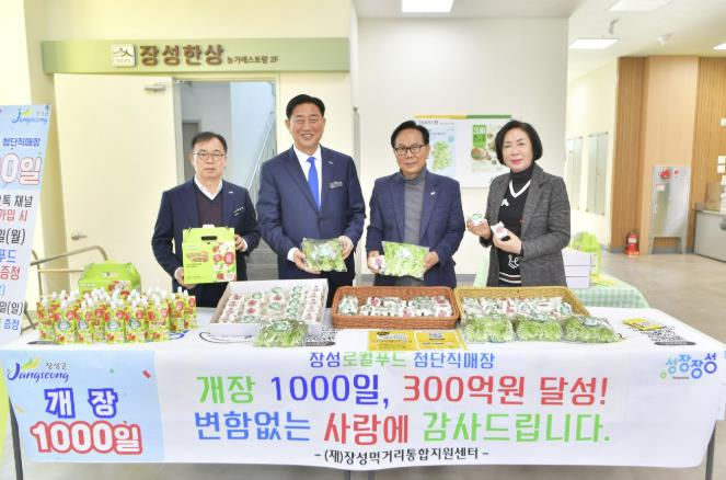 2022년 6월에 개장한 장성로컬푸드 첨단직매장은 신선한 지역농산물을 농가 직거래로 판매한다. 정기적인 농약 안전성 검사와 판매기한 준수로 소비자들로부터 꾸준히 신뢰받고 있다. 그 결과, 개장 1000일 만에 누적 매출 300억 원을 달성하는 괄목할 만한 성과를 냈다.