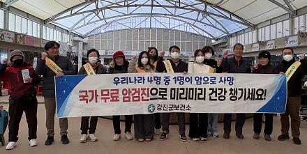 한준호 강진군 보건소장은 “암은 건강 실천과 조기 검진을 통해 예방과 치료가 가능한 만큼 국가암검진 참여는 매우 중요하다”며 “암 예방의 날을 맞아 군민들이 암 조기 검진에 관심을 가지고 미리 검진을 받아 나와 가족의 건강을 지키길 바란다”고 말했다.