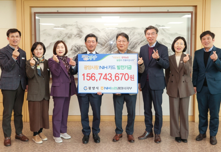 이날 전달식에서 정인화 광양시장은 “NH농협은행과 제휴를 통해 적립된 기금은 지역발전을 위해 필요한 곳에 사용할 계획이며, NH농협은행 광양시지부도 시민과 지역발전을 위해 최선을 다해주길 바란다.”라고 말했다.
