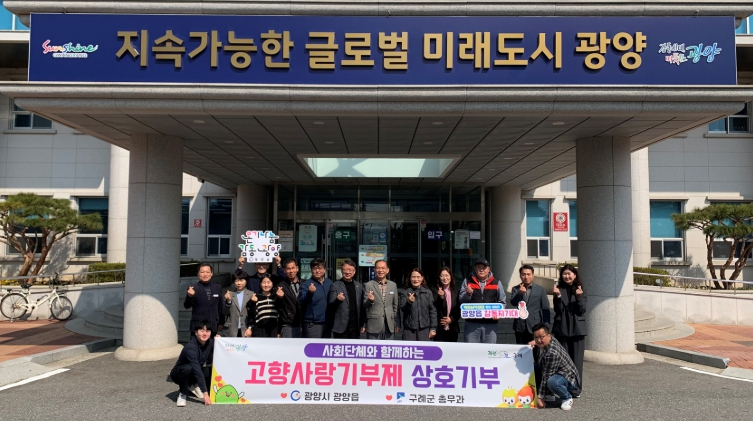 권회상 광양읍장은 “공직자들의 솔선수범과 사회단체의 자발적인 참여에 진심으로 감사드린다”며 “이번 기부를 계기로 앞으로도 지속적인 교류와 긴밀한 협력을 통해 양 지역이 동반 성장할 수 있기를 바란다”고 말했다.