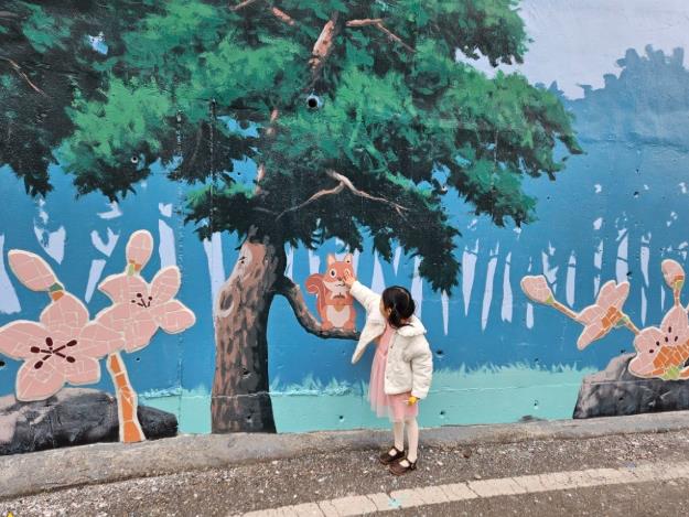 특히, 주민들의 산책로인 점을 고려하여 강한 색채보다는 편안한 색채를 사용하고, 다람쥐·새 등 숲속 동물들을 표현해 생동감을 더했다.