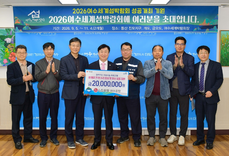 정기명 시장은 “LG화학의 진정성 있는 사회공헌과 나눔 활동이 여수 발전에 큰 힘이 됐다”며 “다가오는 2026여수세계섬박람회에도 공식 후원사로 참여해 콘텐츠의 풍성함을 더해주길 바란다”고 전했다.