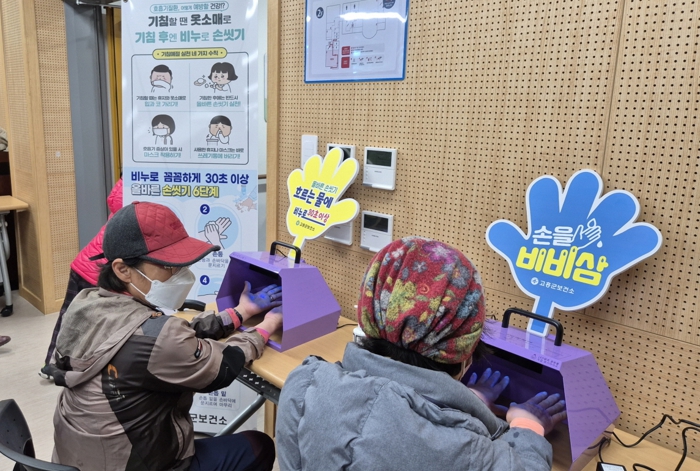 특히, 교육 대상자의 특성을 고려해 그림 자료와 동영상 등을 다수 활용했으며, 형광물질을 이용한 뷰박스를 통해 손 씻기 전·후 청결 상태를 시각적으로 보여줌으로써 효과적인 손 씻기를 실천하도록 유도했다. 교육은 ▲올바른 손씻기 방법과 뷰박스를 활용한 실습 ▲마스크 착용 방법 ▲수인성·식품매개 감염병 예방 방법을 중심으로 진행됐다.