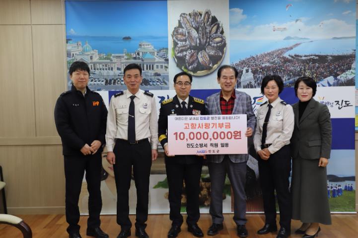 김희수 진도군수는 “진도군을 위해 따뜻한 마음을 전해준 진도소방서 직원분들에게 깊이 감사드린다”며 “소중한 기부금은 군민 복리증진 및 진도군 발전을 위해 사용하겠다”고 강조했다.
