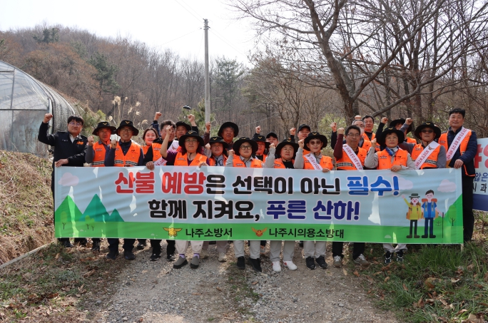 이번 캠페인에는 나주소방서와 지역 의용소방대원들이 참여해 등산객과 시민들을 대상으로 산불 예방의 중요성을 적극 알리고, 입산 시 주의사항을 안내했다. 특히 등산로 입구와 주요 코스 주변에서는 ▲화기물질 반입 금지 ▲논·밭두렁 소각 자제 ▲산불 발생 시 신고 요령 등을 중심으로 실질적인 홍보 활동을 펼쳤다.
