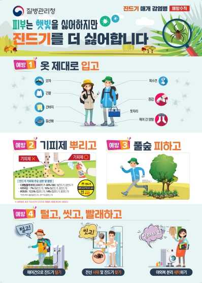 또한, 이 시기 야외활동 후 2주 이내 고열, 구토 등 소화기 증상이 있거나 진드기에게 물린 흔적, 진드기를 육안으로 확인했을 경우 즉시 의료기관에서 진료받을 것을 강조했다.