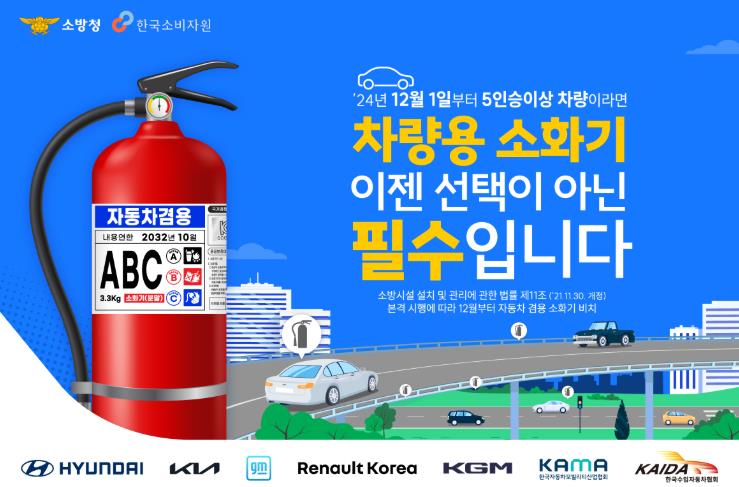 지난해 12월 1일부터 시행된 ‘소방시설 설치 및 관리에 관한 법률’ 제11조 개정안에 따라, 차량용 소화기 의무 비치 대상이 기존 7인승 이상 차량에서 5인승 이상 모든 차량으로 확대됐다.