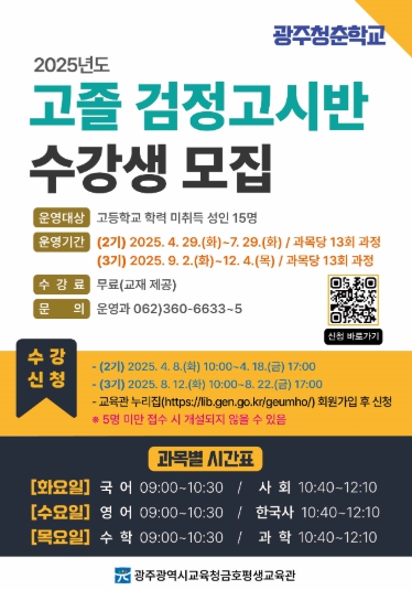 ’고졸 검정고시반‘은 ’광주청춘학교‘ 사업의 하나로 성인 만학도와 시니어의 배움의 욕구 충족과 학력 취득 기회를 제공하기 위해 마련됐다.