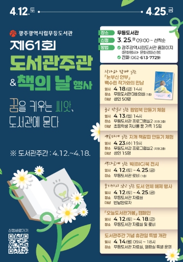 송경희 광주시립도서관장은 “도서관주간 동안 시민들이 책에 한 발짝 더 다가가고 나아가 책 읽기를 생활화 하기를 바란다”며 “한강 작가의 노벨상 수상 소식으로부터 시작된 ‘책 읽는 광주’의 열기가 광주시민의 마음을 오래도록 따뜻하게 만들어 주는 하나의 상징이 되기를 바란다”고 말했다.
