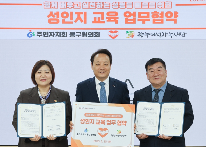 이날 협약에 따라 광주여성가족재단은 전문 강사진을 구성해 맞춤형 교육 프로그램을 제공하고, 주민자치회 동구협의회는 교육 참여를 독려하며 마을 단위에서 성인지 감수성 향상을 위한 활동을 추진한다.