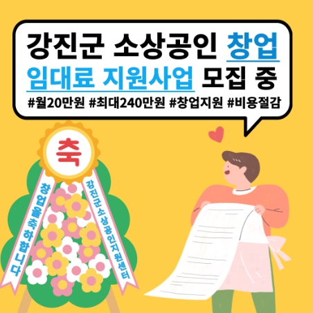 이 사업은 강진군에서 창업한 소상공인을 대상으로 월세 또는 전세 계약으로 발생하는 임대료 일부를 지원해 초기 정착을 돕기 위한 지원사업이다.