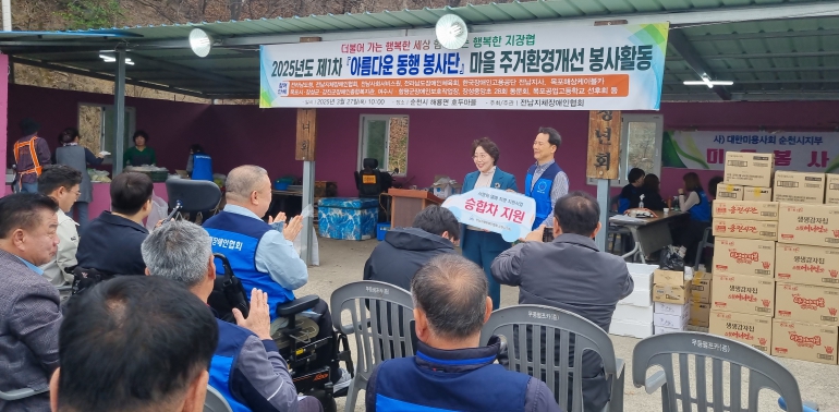 ‘아름다운 동행 봉사단’은 전남지체장애인협회, 한국장애인고용공단 전남지사, 전남장애인체육회 등 6개 민간기관 140여 명이 뜻을 모아 2023년 3월 구성했다. 연 4회 분기마다 지역 마을을 순회하며 봉사활동을 통한 사회공헌사업을 펼치고 있다.