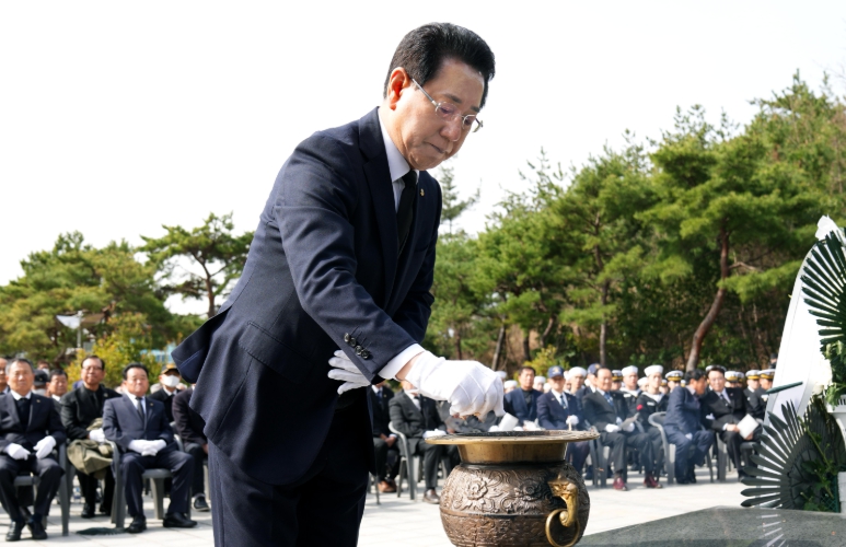 김영록 지사는 기념사에서 “조국 수호를 위해 목숨을 바친 서해수호 영웅의 애국심 덕분에 이 땅의 자유와 평화가 계속될 수 있었다”며 “조국을 위해 목숨을 바친 애국선열과 호국영령의 숭고한 뜻을 널리 알리고 예우에 더욱 정성을 쏟겠다”고 말했다.