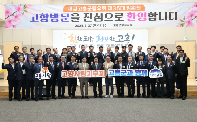 이번 간담회에는 제35대 재경고흥군향우회 송호림 회장과 신임 임원진 등 30명이 참석해, 고향 발전을 위한 다양한 분야에 대해 의견을 나누었으며, 우주발사체 클러스터 조성, 드론 중심도시, 스마트팜 혁신밸리의 3대 미래전략산업과 농수특산물 판로 개척, 관광객 유치, 고향사랑기부제 참여 등 향후 군정 추진 방향과 계획에 대해 논의하며 큰 관심을 보였다.