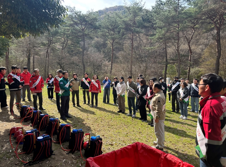 또, 산불발생 때 현장에 투입하게 될 공무원진화대를 대상으로 산불방지기술협회 강사를 초빙해 등짐펌프, 불칼퀴, 삽 등 산불진화장비 사용법 등 현장교육도 진행했다.