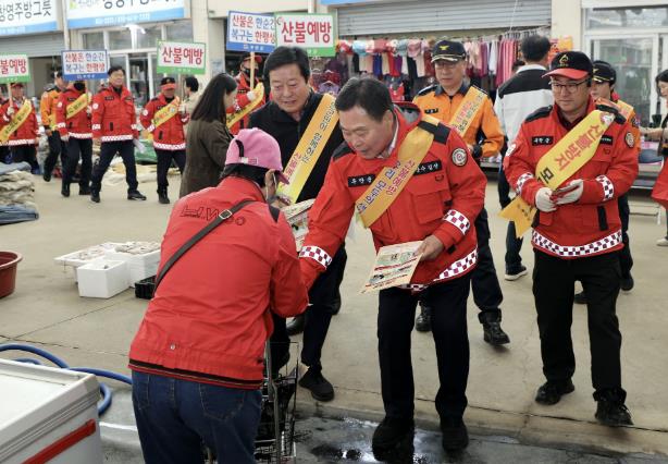 김산 군수는 29일 주말에도 불구하고 5일장이 열린 무안전통시장을 찾아 산불예방 캠페인을 진행하며, 군민들에게 건조한 날씨 속 산불 위험을 강조하며 각별한 주의를 당부했다.