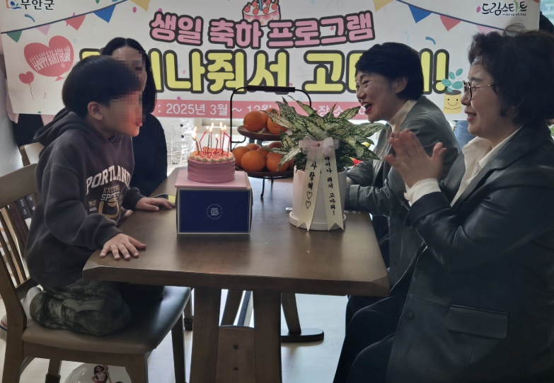 한편, 무안군 드림스타트는 매해 취약계층 아동들에게 지역사회 후원 등을 통해 생일 축하 지원 사업을 진행하고 있으며, 아이들의 건강한 성장 발달을 도모하고 공평한 출발 기회를 보장하기 위하여 지역사회와 연계한 복지, 교육, 보건 등의 맞춤형 통합서비스를 제공하고 있다.