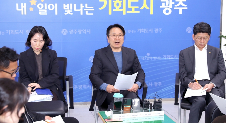 강기정 시장은 이날 오전 부시장과 실국장이 참석한 가운데 일일경제상황점검 1차 회의를 개최했다. 강 시장은 이 자리에서 “탄핵 선고 때까지 추경·통상·민생 분야에 대한 각 실국별 이슈 및 긴급대응체계를 갖출 것”을 주문했다.
