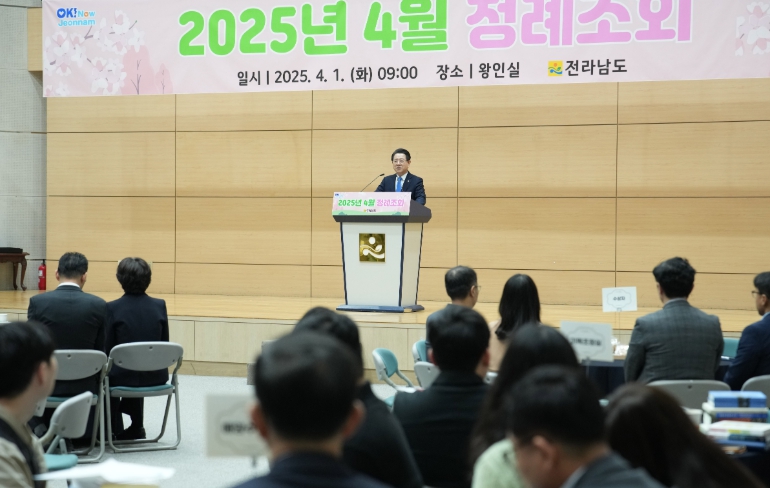 김영록 지사는 이날 오전 도청 왕인실에서 열린 정례조회를 통해 “4월은 새 기운이 혼돈과 무질서 속에서 새 질서를 찾아가는 달로, 전남에서 새 희망과 생명을 불어넣어 대한민국 발전을 선도하자”며 이같이 밝혔다.