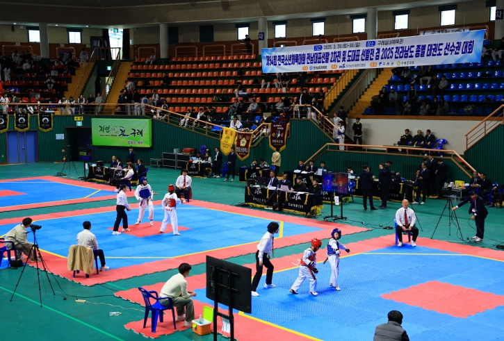 이 대회에는 전라남도 내 학교 소속팀과 태권도장에서 선수(377명)와 학부모 등 600여 명이 참여해 경기장 현장은 열정 가득한 선수들이 치열한 경기를 치렀으며, 응원의 열기 또한 뜨거웠다.