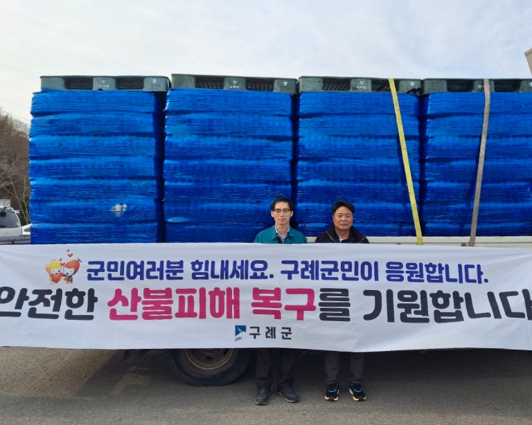 김순호 군수는 하동군과 산청군 산불방지대책본부에 구례군 산림과장을 통해 구례 지역에서 생산한 생수 1,000박스를 전달하고 관계자, 주민들을 위로했다.