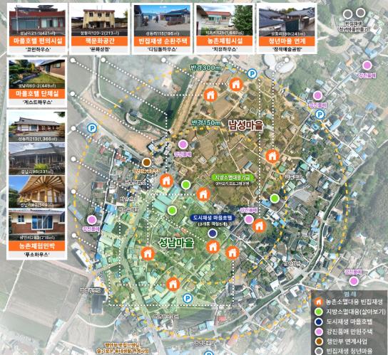 농촌빈집재생지원사업은 빈집이 밀집된 지역을 대상으로 민간과 지자체가 협력해 규모화 있게 정비하는 것으로, 농촌에 생활인구가 유입될 수 있도록 빈집을 주거·워케이션, 문화·체험, 창업 공간 등으로 구성하는 것을 목적으로 하고 있다.