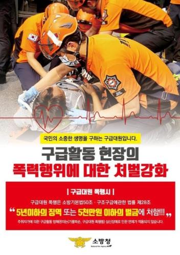 현행 ‘소방기본법 제50조’, ‘119구조·구급에 관한 법류 28조’에 의하면 소방대원에게 폭행 또는 협박을 행사해 구조·구급활동을 방해한 자는 5년 이하 징역 또는 5000만원 이하 벌금에 처하도록 규정하고 있다.