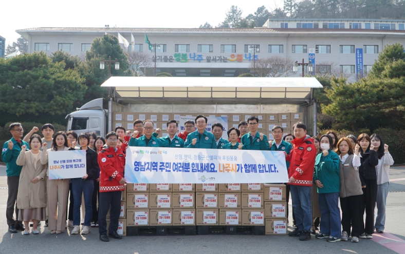 이번 지원은 최근 대규모 산불로 삶의 터전을 잃고 임시 대피소에서 생활하는 주민들의 불편을 덜어주기 위한 것으로 나주시는 지역 특산품이자 간편 식품인 누룽지 150상자(1,200만 원 상당)를 지원하기로 했다.