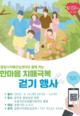 서영옥 광양시 건강증진과장은 “이번 행사를 통해 참가자들이 치매에 대한 편견과 부정적인 인식을 개선하고 치매 예 방관리를 위한 생활 속 걷기 등 건강생활을 실천하길 바란다”며, “앞으로도 치매와 관련된 다양한 프로그램을 개발하는 등 지역 내 치매 어르신과 그 가족들의 삶의 질 향상을 위해 최선을 다하겠다”고 말했다.